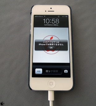 Apple iPad Camera Connection Kit同様に、iPhone 5/iPod touch (5th generation)に接続した場合「このアクセサリはiPhoneでは使用出来ません」と表示され認識されません。