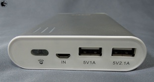 ポート類は、LEDライト、本体充電用のmicro-USB端子、5V 1A USB出力端子、5V 2.1A USB出力端子が用意されています。