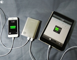 さっそく、USB 1A 出力ポートでiPhone 5を、USB 2.1A 出力ポートでiPad miniを充電してみました。