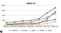 Appleが、2012年度第2四半期決算報告を発表しています。当四半期の売上高は392億ドル、純利益は116億ドル、希薄化後の1株当り利益は12.30ドル。比較として前年同期は、売上高が247億ドル、純利益が60億ドル、希薄化後の1株当り利益が6.40ドルでした。売上総利益率は、前年同期の41.4%に対し、47.4%となり、当四半期の米国市場以外の売上比率は64%だったと報告しています。