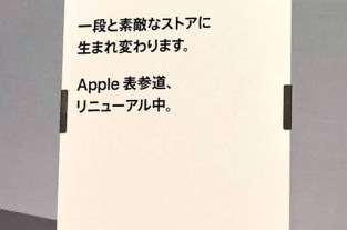 引き続き地上階フロア工事は行われ、ガラス壁には、表参道店が最初にオープンする前と同じケヤキをモチーフにしたAppleロゴが使われた幕で覆われています。