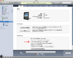 iTunes 9.1以降では、接続デバイスとして、iPadも表示されるようになっていることが確認出来ます。