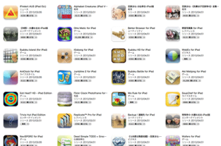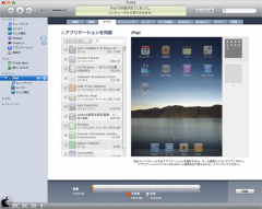 アプリケーションを同期画面では、iPhone/iPod touch同様に、iPadの画面が表示され、そこにアプリアイコンが表示されて管理出来るようになっています。