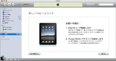 初めてiTunesに接続すると「新しい iPad へようこそ」の画面が表示されます。