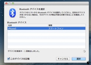 最初に、OS X Mountain LionのBluetoothデバイス接続で、iPhoneをスマートフォン登録します。