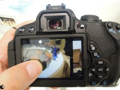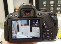 EOS DIGITAL初となる静電方式タッチパネル液晶が採用され、ピントを合わせたい場所をタップすると、AFフレームが移動し、素早くオートフォーカスされる「ライブ1点AF」や、ワンタッチでAFと撮影を行う「タッチシャッター」機能などが搭載されています。