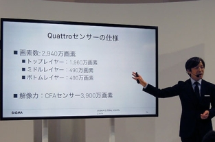 CP+2014において、シグマが、Foveon X3 ダイレクトイメージセンサー「Quattro」を搭載した高画質コンパクトデジタルカメラ「SIGMA dp2 Quattro」の展示を行っていました。