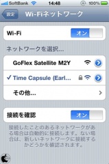 GoFlex Satelliteの電源を入れてしばらくしてから、iOSのWi-Fiネットワークを見ると「GoFlex Satellite XXX」と表示されたネットワークがリストに表示されます。