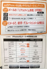 auショップに行ったら、auのiPhone 4SとソフトバンクモバイルのiPhone 4Sとのメール機能の違いついての説明が書かれた紙が貼られてました。