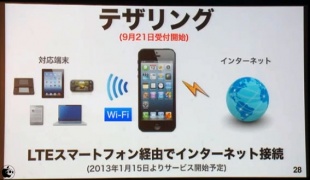 そして、iPhone 5向けのテザリンク機能サービスを、2013年1月15日から提供開始すると発表しています。