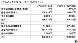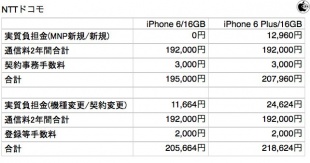 Apple StoreのiPhone 6・iPhone 6 Plus SIMフリーモデルと、各キャリアモデルとの2年間総支払額比較