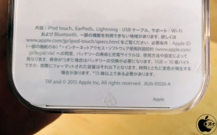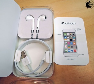 同梱されているアクセサリーは、iPod touch (5th generation)/16GBモデルと同じで、Lightning - USBケーブルと、Apple EarPods with Remote and Micのリモコン/マイク無しとなっています。