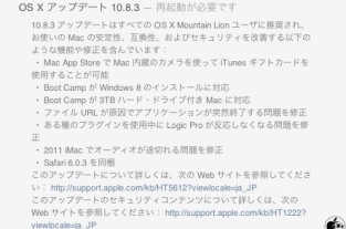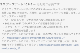 Apple、いくつかの問題を修正した「OS X Mountain Lion v10.8.5 追加アップデート 1.0」の配布を開始