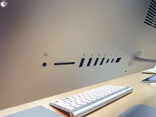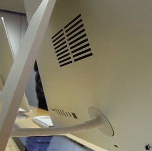 下から見てみると、以前はパンチング処理によるスリットが開けられていましたが、iMac (21.5-inch, Mid 2011)では、全体に渡って薄いスリットが開けられています。