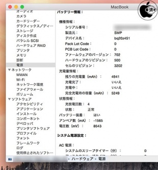 システム情報を見ると、バッテリー容量は5,249mAhだと表示されす。