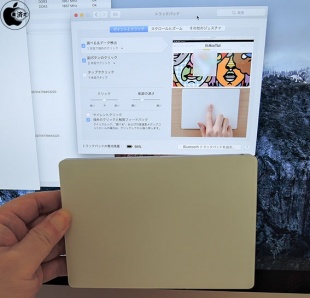 単3型電池2本で駆動するタイプだった「Apple Magic Trackpad」と比べると、傾斜角は約半分となり、Magic Keyboardの傾斜角と揃うように設計されています。