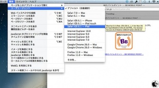 Finderメニューの開発メニューから、ユーザエージェント>Safari iOS 6.1 - iPadを選択します。