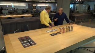デザインラボは、Apple Retail Storeに良く似たテーブルを使用していて、現在開発中の新製品の多くが覆われている状態なのが確認出来ます。