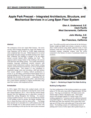 Structural Engineers Association of Californiaが、2017年9月13日〜15日にかけて開催された「SEAOC 2017 CONVENTION」において、Clark PacificとArupが、Apple Park建設における技術報告書「Apple Park Precast – Integrated Architecture, Structure, and Mechanical Services in a Long Span Floor System」を公開していました。