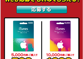 キャンペーン期間中に、ポプラグループ各店(一部除く)にて対象iTunes Cardを購入し、応募締切までにWEB応募ページから、メールアドレス及び、 iTunes Cardのカード番号を入力して応募すると、 もれなく対象カードの額面金額に応じたiTunesデジタルコードがプレゼントされます。