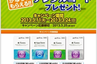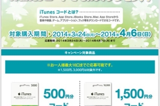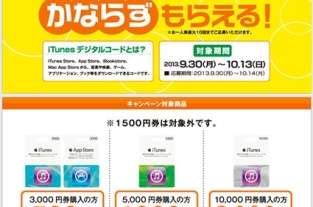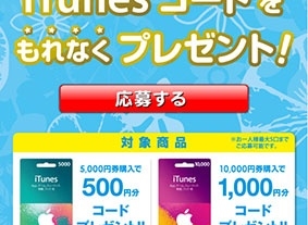 1500円、3,000円、5,000円、10,000円のiTunes Cardを購入された方が対象となります。
