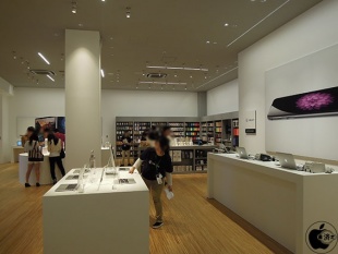 テナントフロア2店舗分を抜いて作られている店舗は、Apple Shopとは比べものにならないほど広く、iPhone 6、iPhone 6 Plusだけでなく、Macも全ラインナップ展示されています。