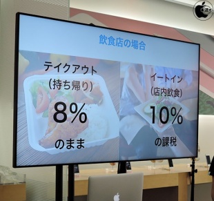 Airレジには商品毎に税率設定することが可能で、テイクアウトなのかイートインなのかの項目表示を行ってオペレーションのミスを無くすことが出来ると説明していました。