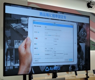 軽減税率について紹介し、消費税率がある項目に関して、店内飲食に加えサービスが加わると10%になり、サービスを伴わない持ち帰り商品になると8%になるといった違いがおき、こうした売上項目に関して異なる内容を、Airレジでは簡単に行うことが出来ると紹介していました。