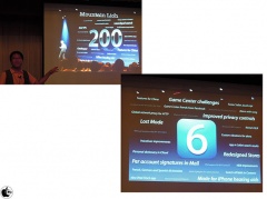 OS X Mountain LionとiOS 6のその他の機能がずらっと記述されたスライドシーンを使って説明するという荒技を持ち出してました。